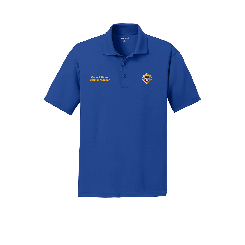Branded with KofC Emblem on Left Chest and Council Name & Number on Right Chest or Right Sleeve.